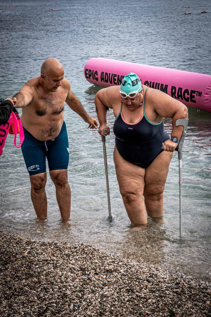 On the first day people are pretty spread out but you will likely end up in small groups of swimmers working together to get to the finish line; its rare that you will ever be swimming totally alone. One of my highlights was on day two when I came across someone with a 22.2 swim hat on who had stopped only about 500m away from the finish. We had a small interaction and she said she didn’t think she could make it, so I told her I would stick with her and we swam over the finish line together before embracing in a huge hug.