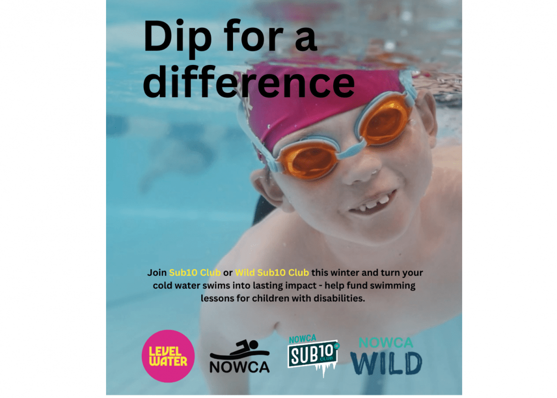 Level Water: At Level Water, we believe every child should get the chance to learn to swim with confidence. Dip for a Difference (DfaD), created with our friends at NOWCA, invites outdoor swimmers to turn their cold water dips into real impact for children who need specialist one-to-one lessons.