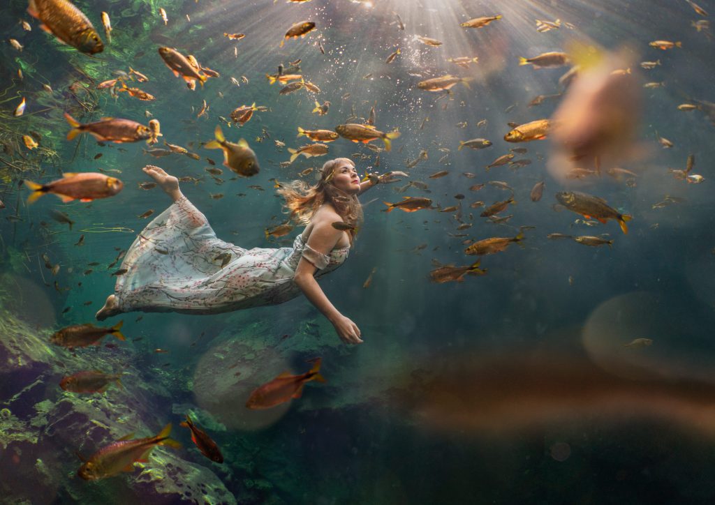 But Lexi’s feelings about being underwater aren’t universal. As well as having this evolutionary phobia of water, many people also fear the unknown. So it’s hardly surprising that we find the underwater world unnerving when more than 80 percent of our ocean is unmapped, unobserved and unexplored; when natural bodies of water are full of weird creatures, scary currents and strange plants. We can’t breathe underwater and our bodies don’t move in the same way. So, how do Lexi’s models look so calm and ethereal?