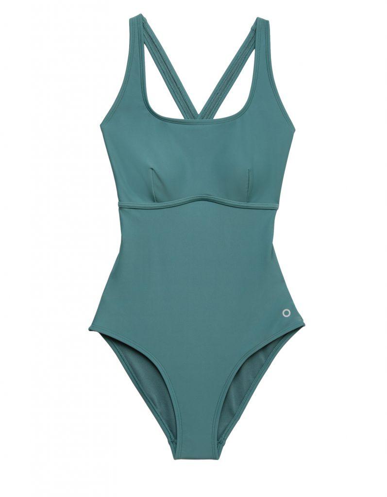 We say: While many brands use recycled materials, it’s rare to find a fully biodegradable swimsuit! The Zero Trace Swimsuit is a great blend of active fit and leisure style. We loved the high front and racer-cut neckline, while the compressive fabric didn’t budge during a training session. The scoop back was fairly high, which meant we didn’t fear the straps slipping and the medium-high leg combined with full coverage on the bum was a perfect combination.