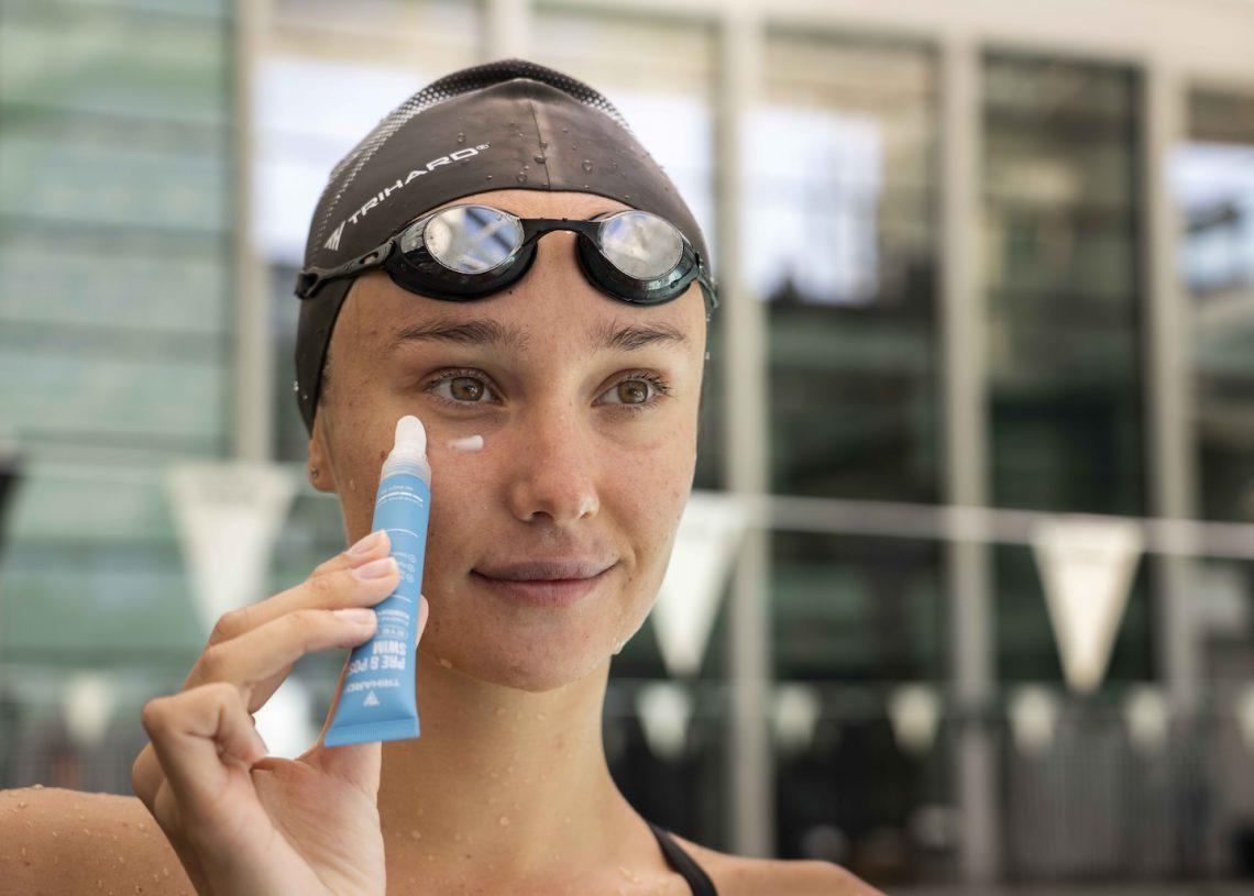For swimmers who are bothered by irritation or goggle marks, this gel adds a soothing, easy step to the routine. And even if you’re not bothered, it simply feels nice.